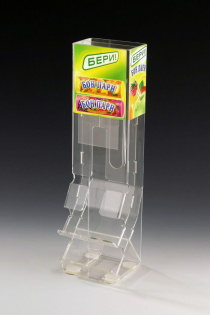 Настольный диспенсер относится к группе популярных POS-материалов и представляет стойку с карманами или полками. Чаще всего в них кладут небольшие товары (жевательную резинку, конфеты, сигареты и пр.) или печатную продукцию (буклеты, листовки), а размещают – на кассах, промостойках, рабочих столах сотрудников или ресепшенах.